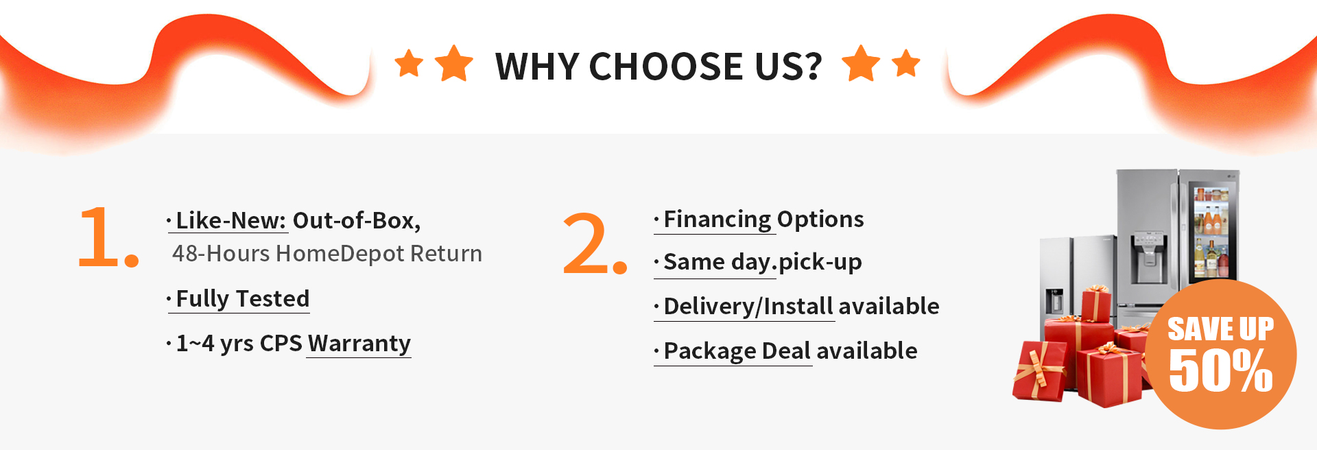 Get more than 45% off compared to Home Depot, Lowe's or Best Buy.